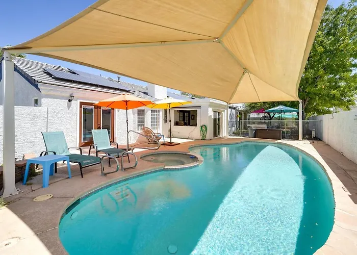 Enhance your stay with Sunny Las Vegas Studio With Shared Pool And Backyard!'s a full kitchen, furnished with a fridge, a stovetop, and kitchenware for your comfort. Sunny Las Vegas Studio With Shared Pool And Backyard! also lies 20 km from McCarran International airport. This accommodation provides guests with a patio.